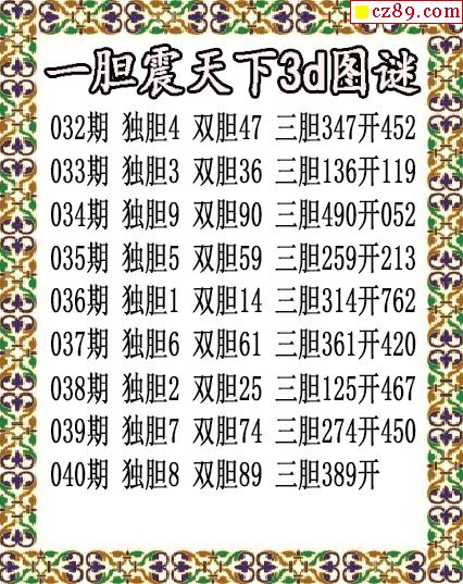 > 一胆震天下独胆2026040期3d图谜(原创)